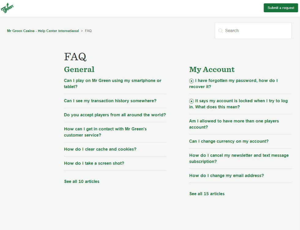 You can contact the support staff of Mr Green through an email, telephone number, or live chat. Live chat was indeed the fastest way for us to do it – the support staff was friendly, knowledgeable, and managed to provide us with information on both trivial and complex matters. Customer support is available 24/7, so you can place your inquiry at any time.